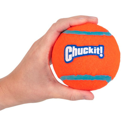 Chuckit!® Tennis Balls are made of high-quality materials and specifically designed for the game of fetch. Constructed of natural rubber it features an extra-thick rubber core and durable material that floats in water. The bright COLOURs provide improved visibility and help to prevent the ball from being lost. Use alone; or with a Chuckit! Launcher (sold separately). These high-bouncing tennis balls are available in sizes small; medium; large; and with one; two; and four-pack options.