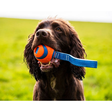 The Chuckit!® Ultra Tug®; is a durable rubber ball on a leash-style cord; is great for tug-of-war games. Made of high-quality materials and designed for the game fetch. Great for the most demanding use; this is no ordinary ball. Great ball for tugging games; with a durable 2-ply nylon handle. With an extra-thick rubber core and a bright COLOUR for improved visibility. Developed to have high bounce and high durability. Compatible with Chuckit! Ball Launchers. Small: 2 inches; Medium: 2.5 inches; Large: 3 inches.