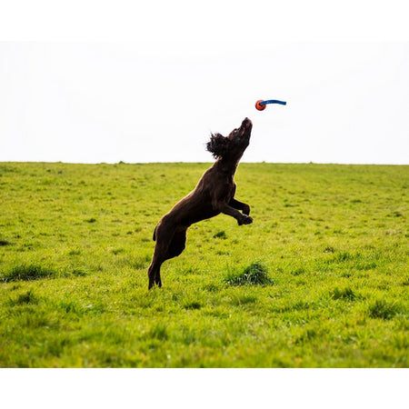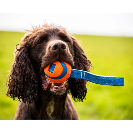 The Chuckit!® Ultra Tug®; is a durable rubber ball on a leash-style cord; is great for tug-of-war games. Made of high-quality materials and designed for the game fetch. Great for the most demanding use; this is no ordinary ball. Great ball for tugging games; with a durable 2-ply nylon handle. With an extra-thick rubber core and a bright COLOUR for improved visibility. Developed to have high bounce and high durability. Compatible with Chuckit! Ball Launchers. Small: 2 inches; Medium: 2.5 inches; Large: 3 inches.