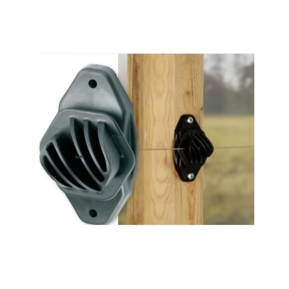 This is a professional insulator for permanent fencing. It is ideal for steel wires. Made of plastic with a screw on fastening. It comes with twenty five pieces in the pack.
