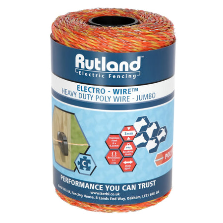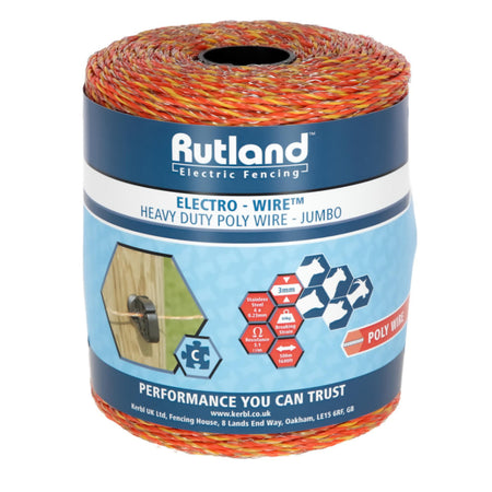 The Rutland jumbo orange electro wire has strong monofilament fibres giving increased fracture load. It is made with high quality workmanship. Comes in lengths of 250m and 500m.