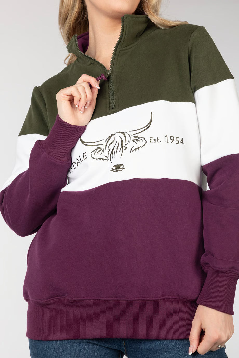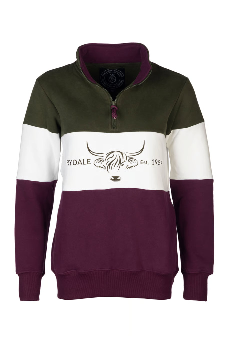 • Embroidered detailing including highland cows and the Rydale brand.