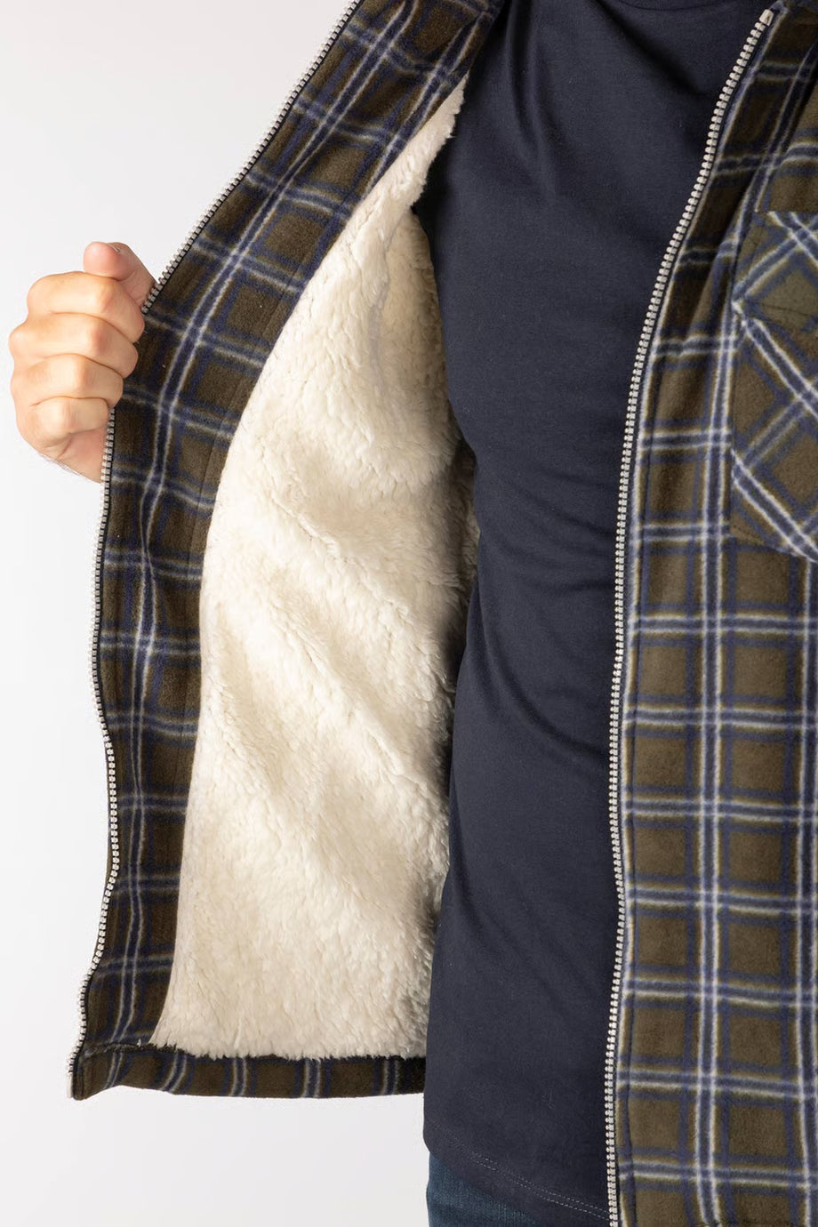 Not only is this men's hooded checked fleece overshirt super practical, but it is also extremely stylish. Available in a stunning blue check pattern, this men's fleece shirt jacket with hood can easily be paired with some dark denim jeans and leather boots for an easy but on-trend look.